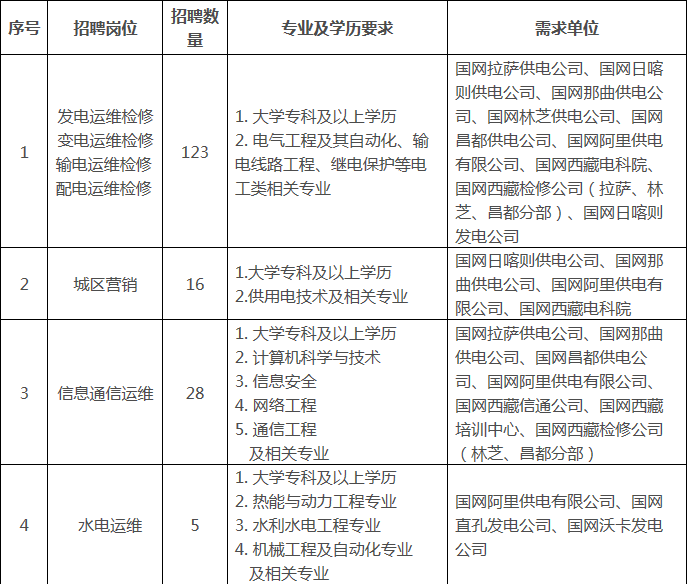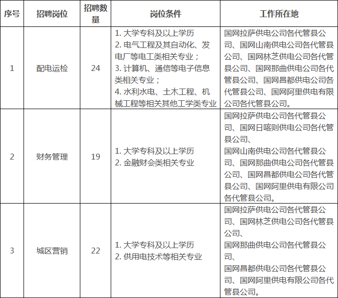 (三)代管縣公司:國(guó)網(wǎng)西藏電力代管縣級(jí)招聘單位27家,本次招聘人員身份為代管縣公司長(zhǎng)期職工(正式員工)。