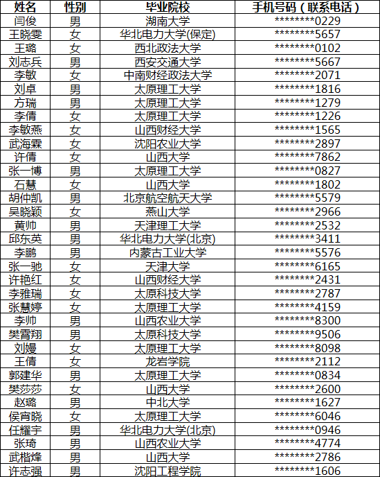 根據(jù)人力資源和社會(huì)保障部要求,為加強(qiáng)招聘高校畢業(yè)生工作的社會(huì)監(jiān)督,現(xiàn)將我公司2017年第二批擬錄用高校畢業(yè)生人選的相關(guān)信息予以公示。公示時(shí)間為2017年6月10日-6月16日。我公司2017年招聘工作已全部結(jié)束。
