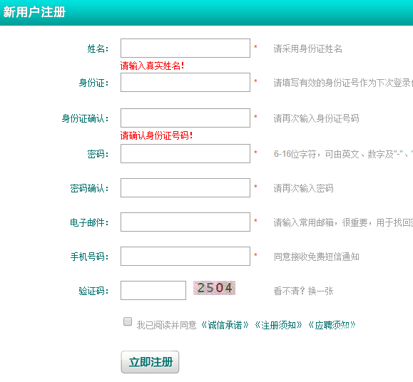 二、進入系統(tǒng)后,未注冊的考生需要先點擊右上角注冊,使用真實姓名及身份證件號進行注冊。