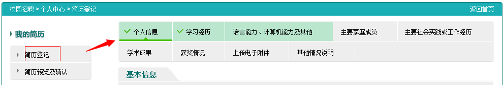 *簡歷登記中前三項為必填項,填寫前需準備資料: