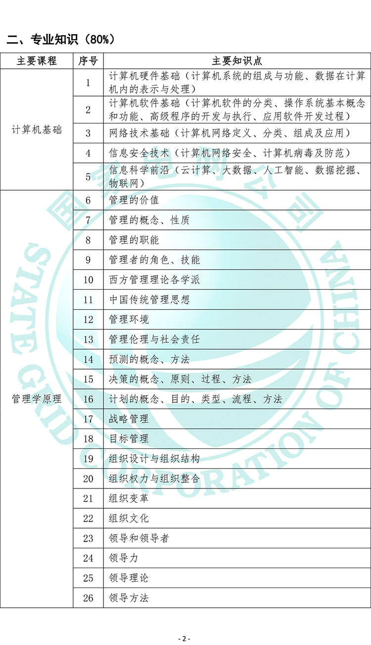 2020國家電網(wǎng)公司高校畢業(yè)生招聘考試大綱(管理類專業(yè)2020版)