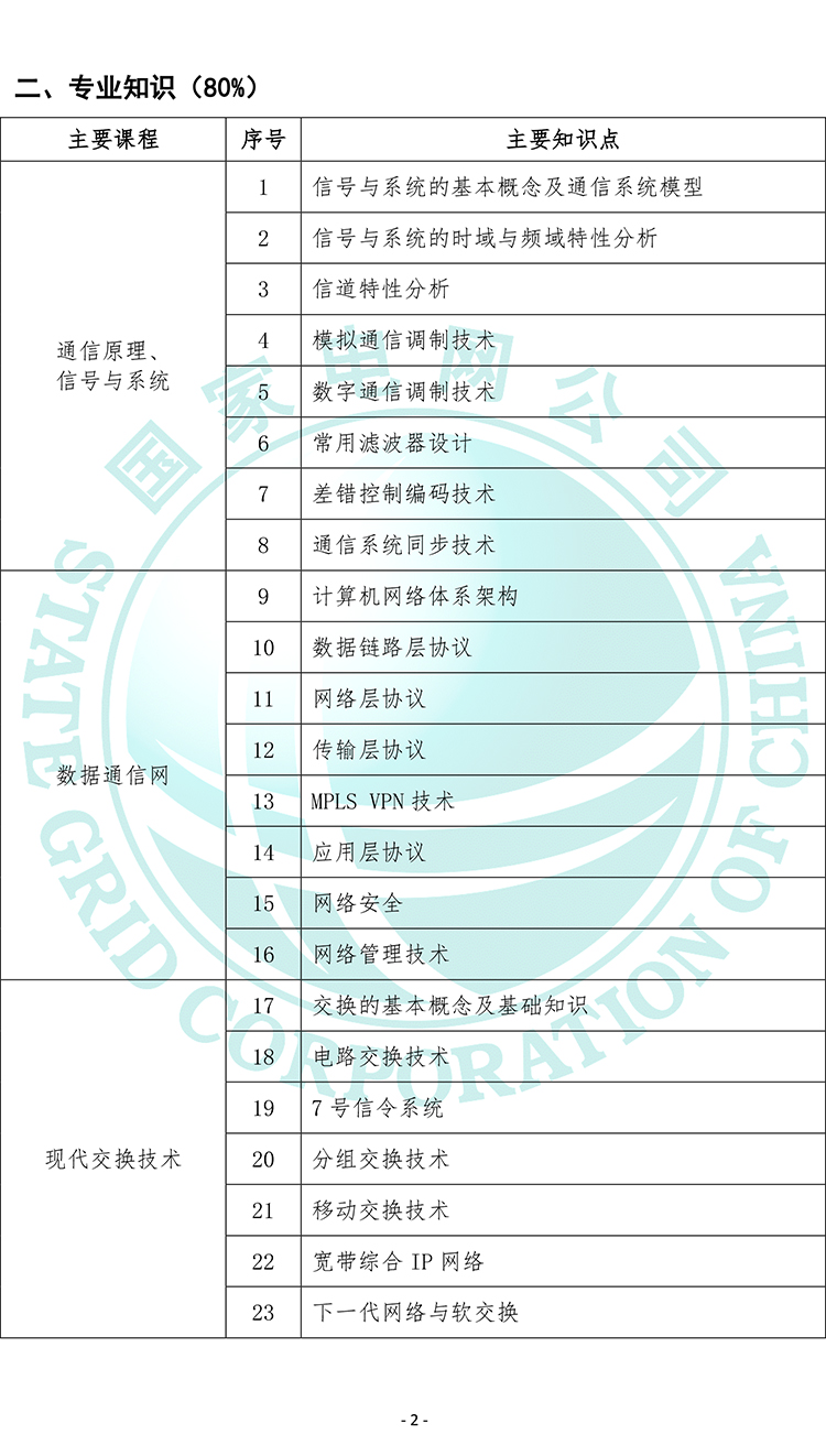 2020國家電網(wǎng)公司高校畢業(yè)生招聘考試大綱(通信類專業(yè)2020版)
