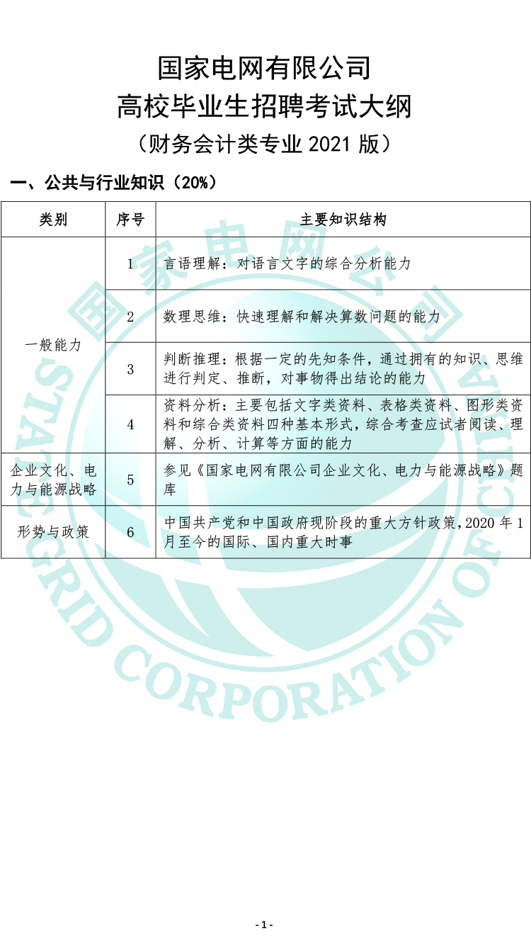 2021國(guó)家電網(wǎng)有限公司高校畢業(yè)生招聘考試大綱(財(cái)務(wù)會(huì)計(jì)類專業(yè))