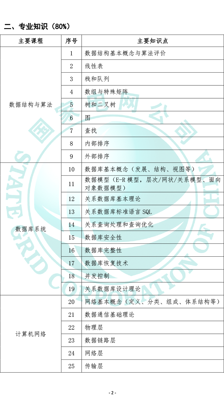 2021國家電網(wǎng)有限公司高校畢業(yè)生招聘考試大綱(計(jì)算機(jī)類專業(yè))