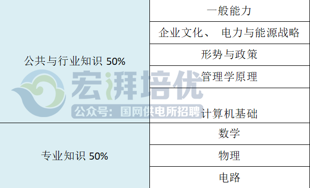 非電工類專業(yè)知識(shí)占50%,公共與行業(yè)知識(shí)占50%