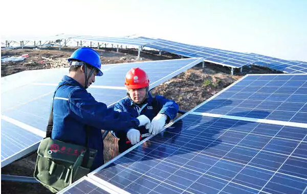 電網(wǎng)員工服務新能源項目并網(wǎng)。